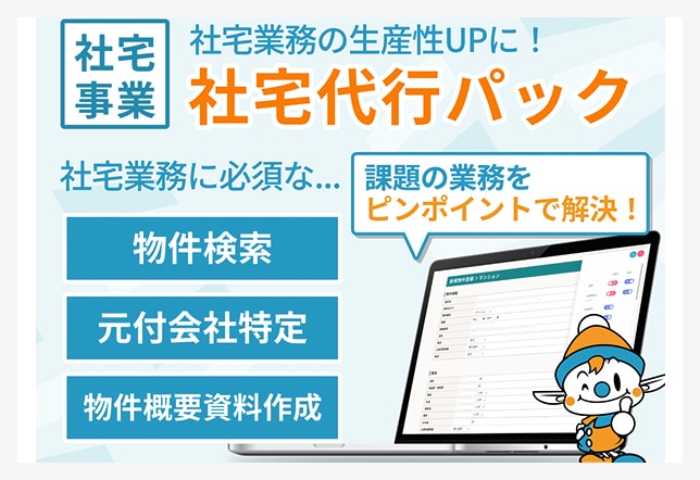集客支援、ブランディング、成約率向上、制作・撮影支援、人材採用・研修、顧客管理、生産性向上など、 不動産仲介・管理業務に役立つ様々な業務支援サービスの資料を、無料でダウンロードいただけます。