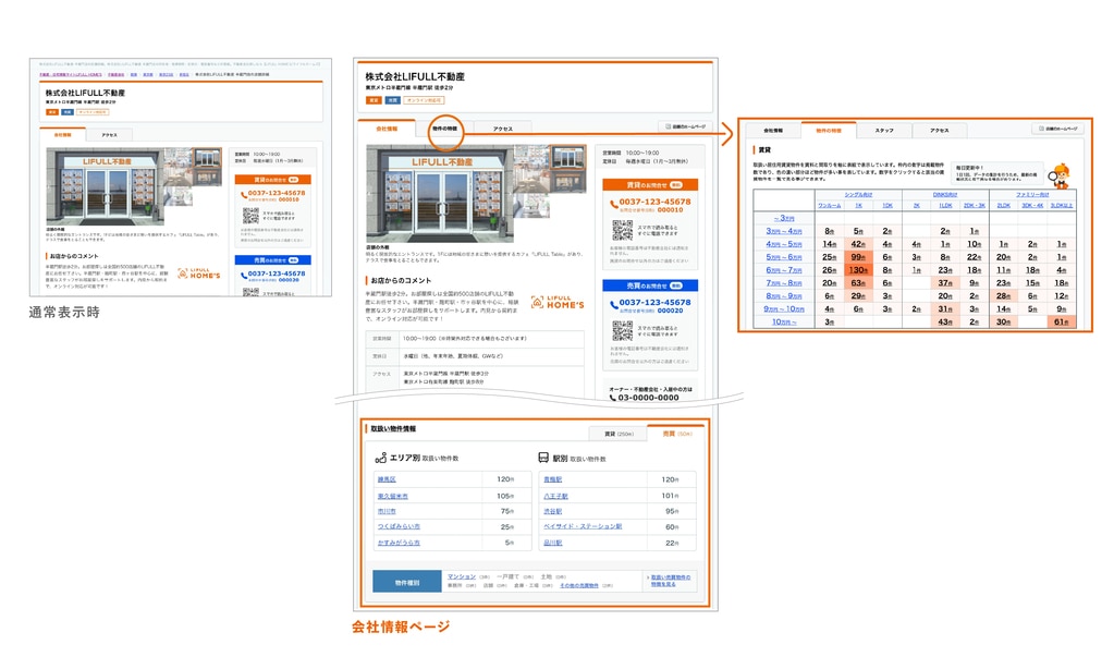 特別広告ポイント枠の追加・パノラマ掲載枠の追加、LIFULL HOME'S住宅評価・営業スタッフコメント・会社情報PR・会社情報ムービーは有料オプションとなります。