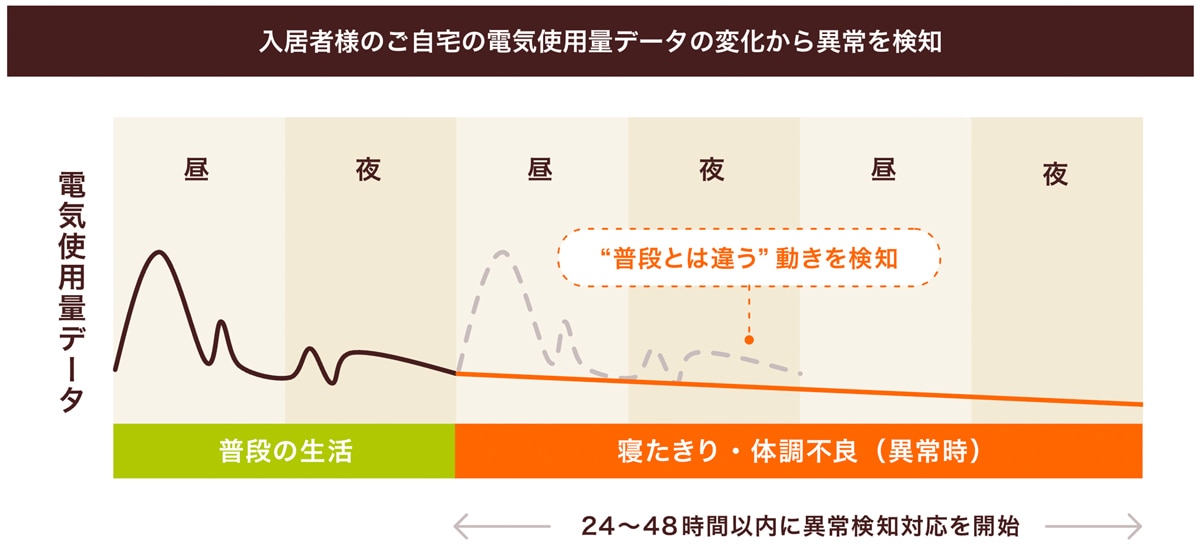 入居者様のプライバシーを尊重し、モニタリングは電気使用量データのみ。導入における心理的ハードルも解決します!