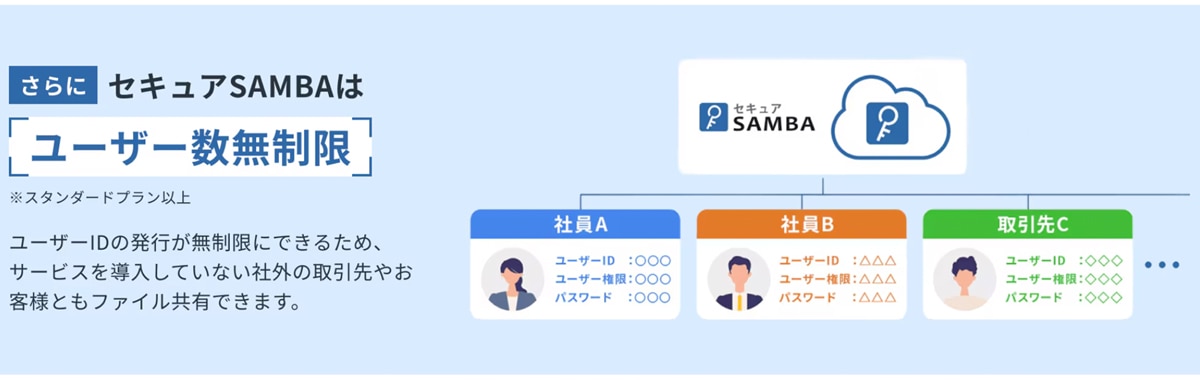 ユーザー数無制限で、社内外問わず安全にデータ共有。
